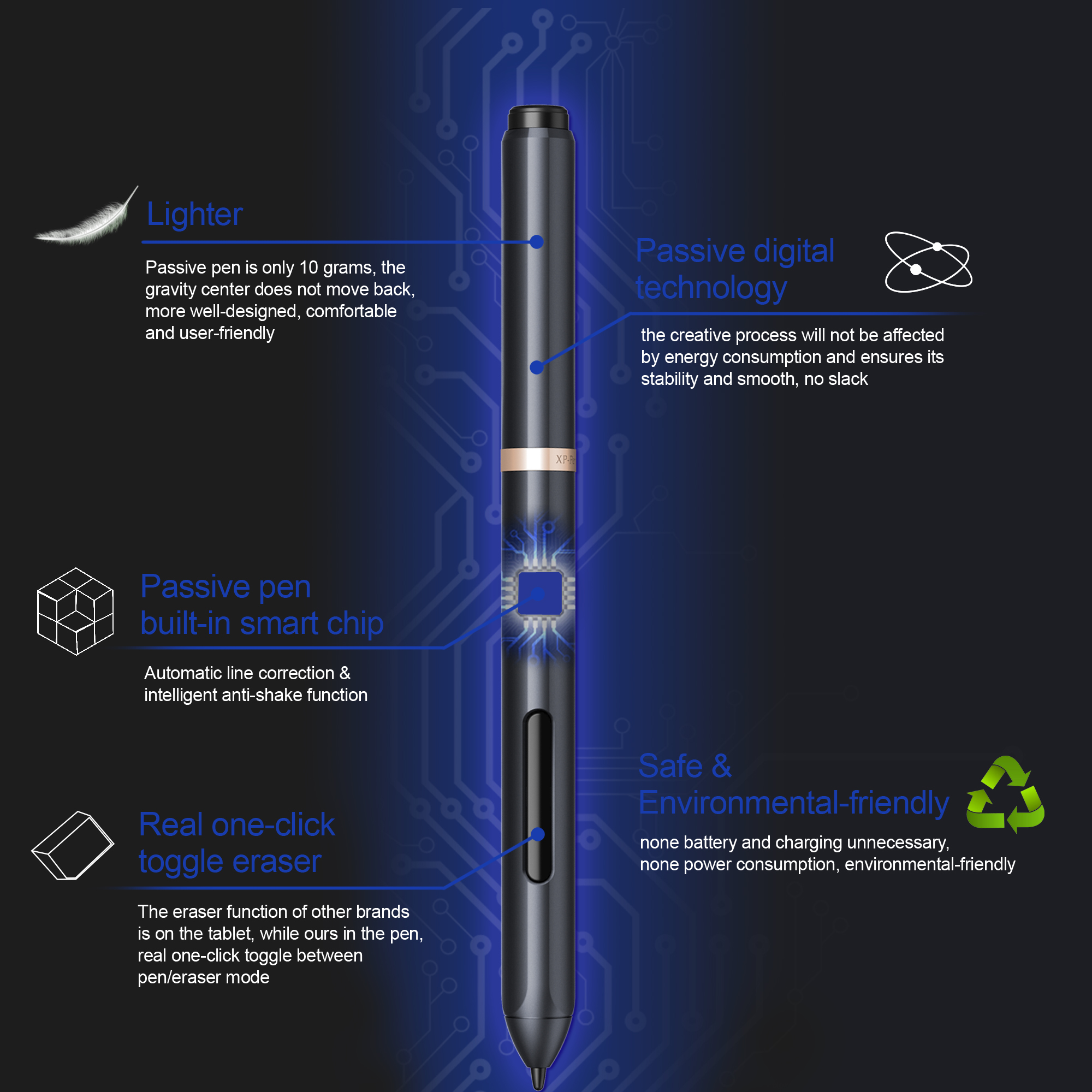 The XP-PEN battery-free stylus mimics the light, smooth feel of traditional pencil drawing.