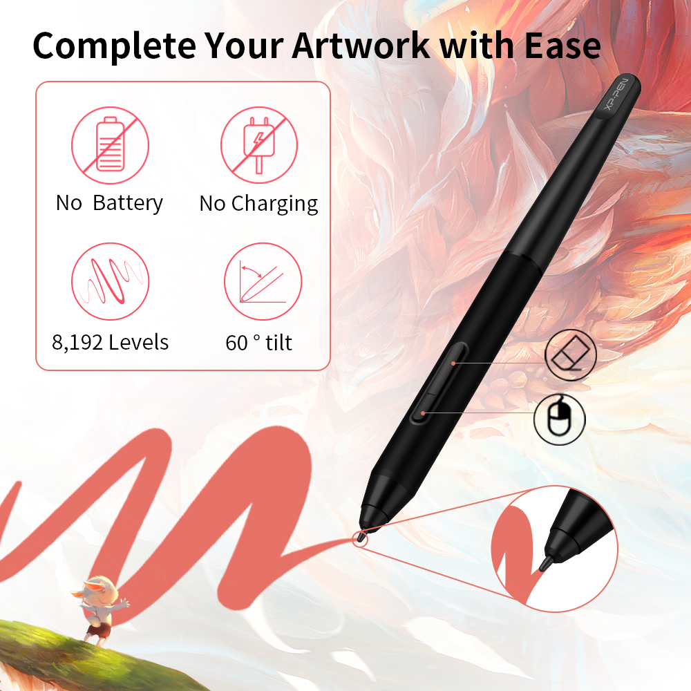 The stylus supports up to 60 degrees of tilt function and has 8192 pressure sensitivity levels. Effortlessly create exquisite strokes and seamless shading.